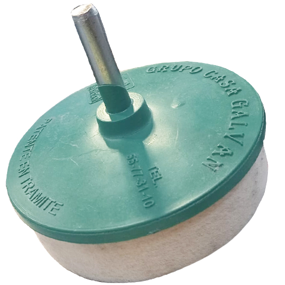 Fieltro montado con base para taladro para pulir vidrio. Utilizar junto con el óxido de cerio para pulir o abrillantar cristal ABR06.