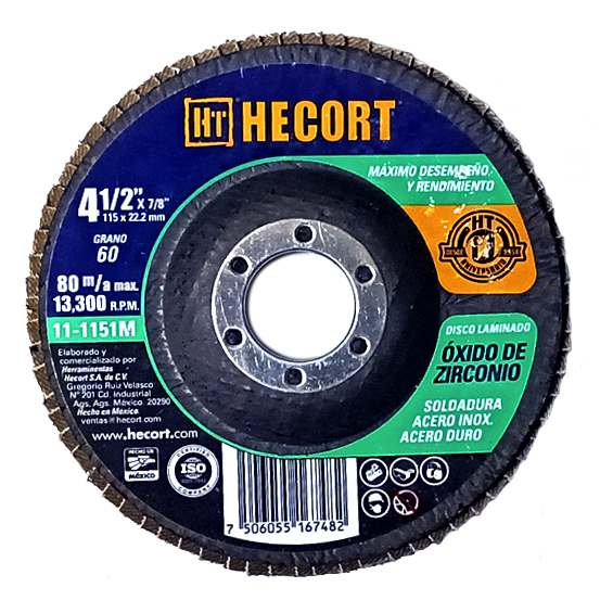 Disco laminado de oxido de zirconio, grano 60. Disco de doble malla y fibra de vidrio reforzada.