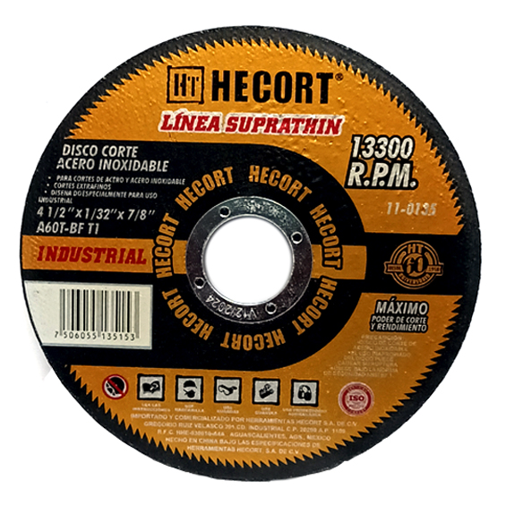 Disco para corte de acero y acero inoxidable, cortes extrafinos.