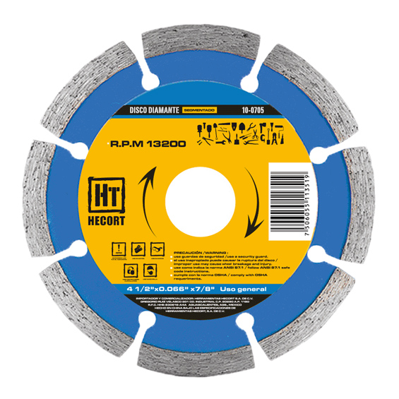 Disco Diamante Segmentado 4 1/2", para cortes en concreto, block, ladrillo, piedra y materiales de construcción.