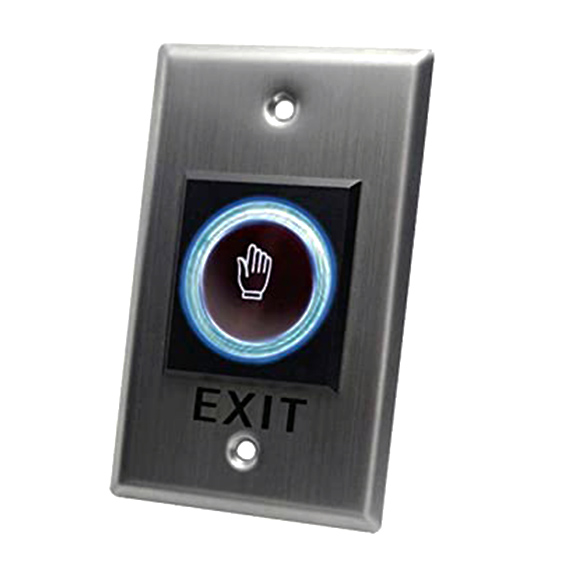 Botón de salida sin contacto con sensor IR, iluminado, normalmente abierto y cerrado con distancia ajustable de detección.