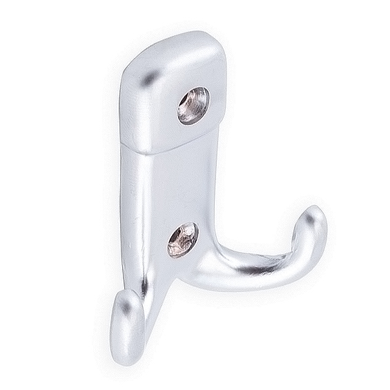 Gancho doble para pared de instalación sencilla. Acabado Cromo brillante. Buen nivel de resistencia.