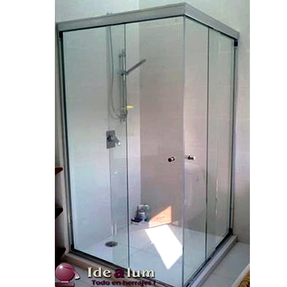 Cancel de baño corredizo en escuadra a 90° para cristal templado de 6mm,