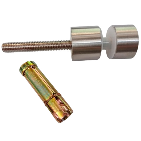 Conector con chapetón y base recta para vidrio templado de 10 - 19 mm. Incluye taquete expansor.