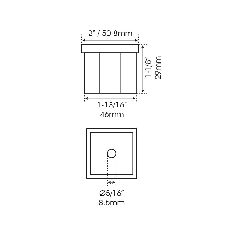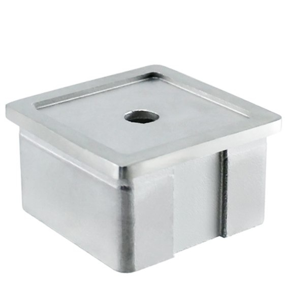 Tapa cuadrada para tubo cuadrado de 2". Cuenta con hueco para inserción de soporte para tubo. Material: acero inoxidable 304
