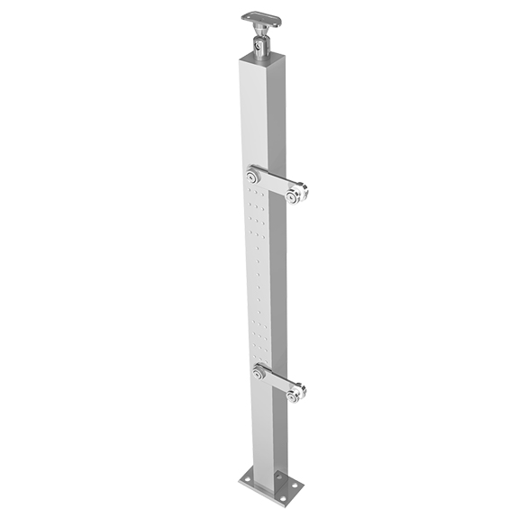 Poste tipo Vuvuzela cuadrado para barandal, con conectores para cristal templado.