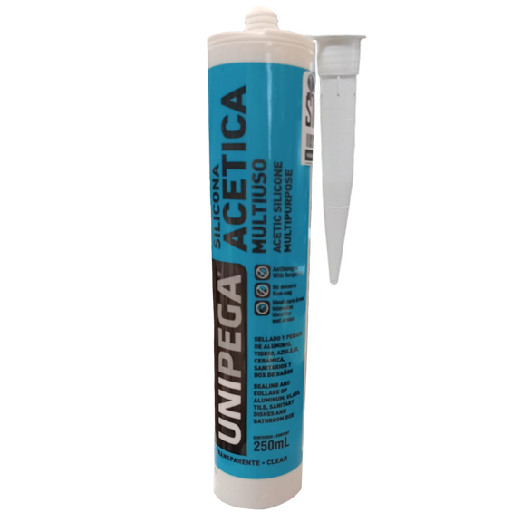 Silicón uso general curado acético multiusos 250 ml para ventanería metálica, para pegar, unir, sellar, comercio, hogar, oficina, etc.