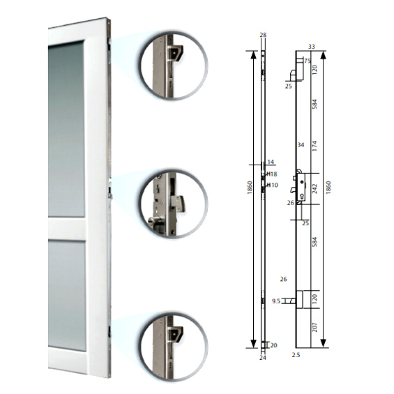 Cerradura de Tres Puntos Combinada con Gancho y Paleta