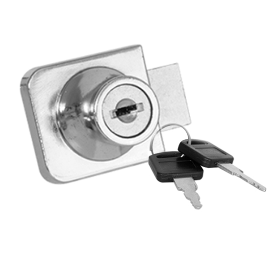 Cerradura para vidrio de 6mm cuadrada, el cristal no necesita perforación para su instalación. Incluye 2 llaves.