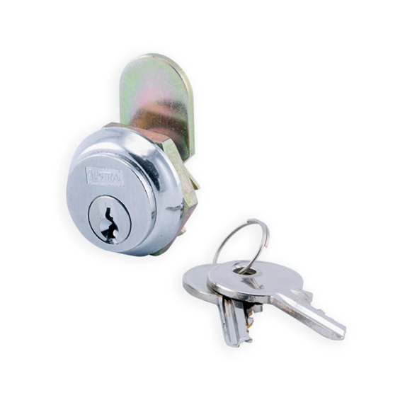 Cerradura para buzón, armario o gabinete metálico. Cerrojo de acción giratoria tipo paleta o gancho.