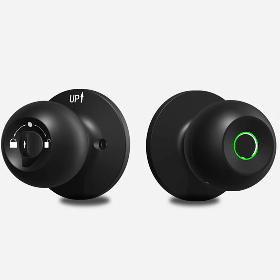 Cerradura inteligente de pomo con conectividad Bluetooth vía App, Huella Digital, y Llave Mecánica.