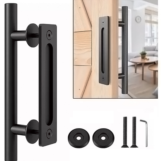 Jaladera de embutir para granero en acabado negro.